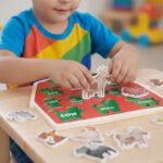Brinquedo educativo em formato de fazenda, ideal para estimular o aprendizado infantil de forma lúdica e divertida.